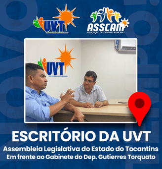 A União de Vereadores do Tocantins (UVT) é uma organização que representa os vereadores do estado do Tocantins, buscando promover a união e o fortalecimento da classe. Nosso objetivo é fornecer suporte, capacitação e representatividade para os vereadores, além de promover a troca de experiências e o desenvolvimento de ações em prol da sociedade. Através do UVT Forte, buscamos melhorar a comunicação e a informação, facilitando o acesso às informações relevantes e promovendo a transparência em nossa atuação.
